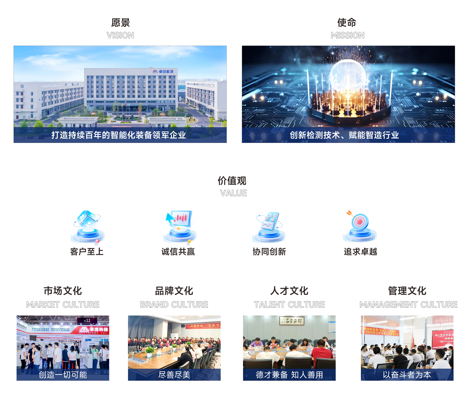 卓茂科技成立于2005年,是一家集研發(fā)、生產(chǎn)、銷售為一體的國家級高新技術企業(yè)、國家級專精特新重點“小巨人”企業(yè)。是工業(yè)X射線智能檢測和芯片焊接技術引領者,是國內(nèi)唯一一家將X射線檢測與返修工藝技術整合為一體的企業(yè),是數(shù)智化設備和解決方案提供商,業(yè)務涵蓋X-Ray智能點料機、工業(yè)3D/CT X-Ray檢測設備,在線/離線X-Ray檢測設備、多功能BGA返修設備等,客戶涵蓋集成電路及電子制造、汽車制造、鋰電池、半導體等領域數(shù)十家世界500強龍頭企業(yè)。