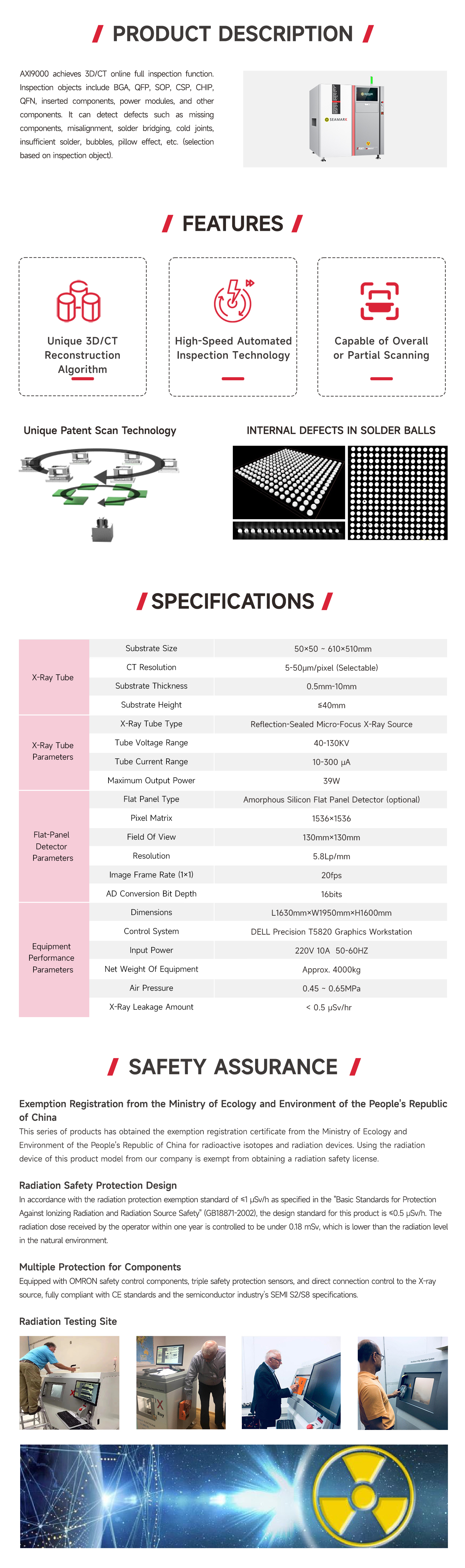 | Equipment Specifications | X-Ray Leakage | <0.5μSv/hr |