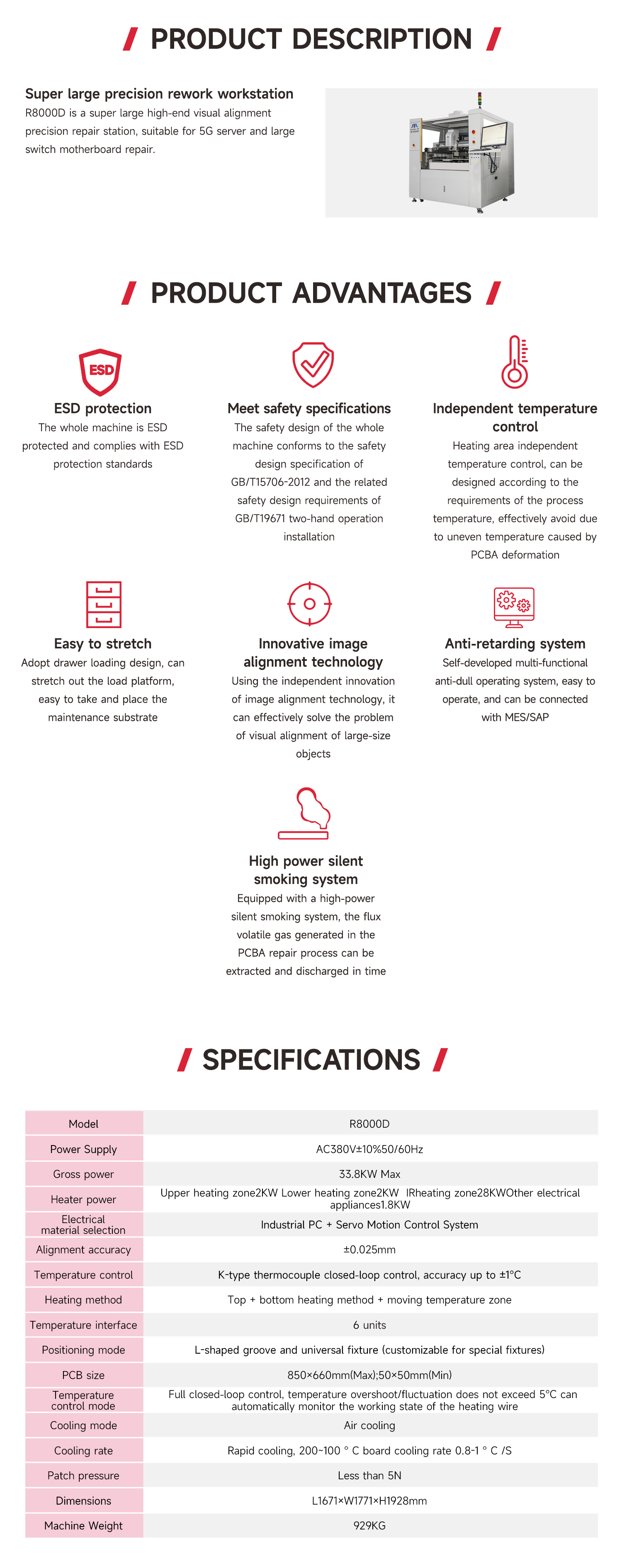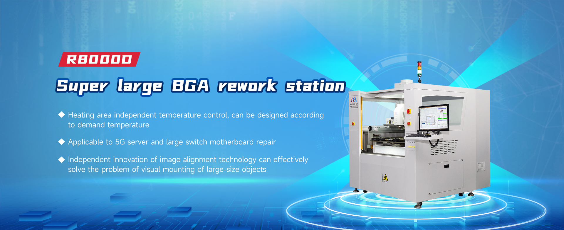 R8000D is a ultra-large high-end optical alignment precision rework station, suitable for rework of 5G server and large exchanger mainboards.