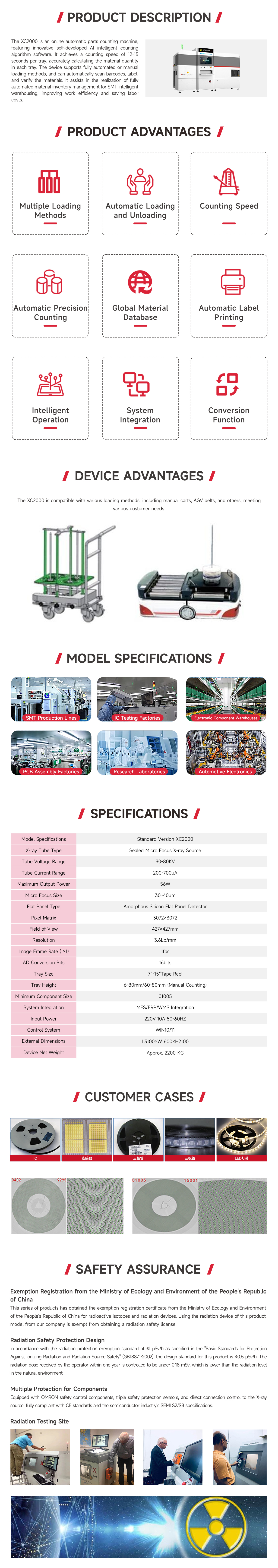 XC2000 is an inline automatic counting machine with innovative self-developed Al inteligent counting algorithm software, a counting speed