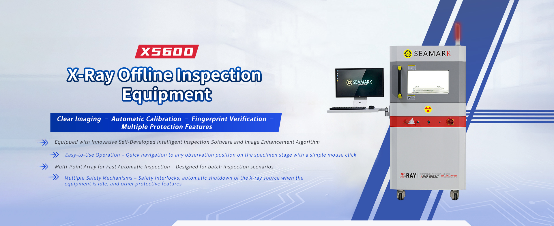 X5600 is a small precision micro-focus X-ray intelligent inspection device, equipped with innovative self-developed intelligent inspection software and a new generation of image algorithms. lt has clearer imaging, is easy to operate, and occupies a small space.lt is suitable for R&D laboratories. offices, quality inspection rooms and other places. lt is the preferred equipment for X-ray inspection of micro-precision