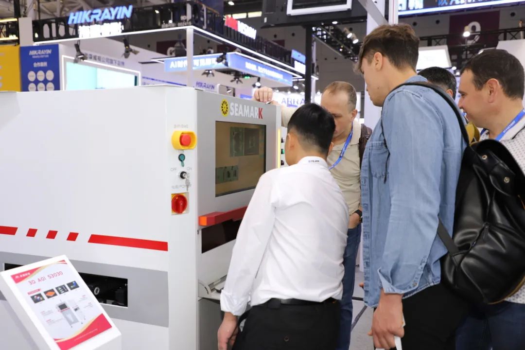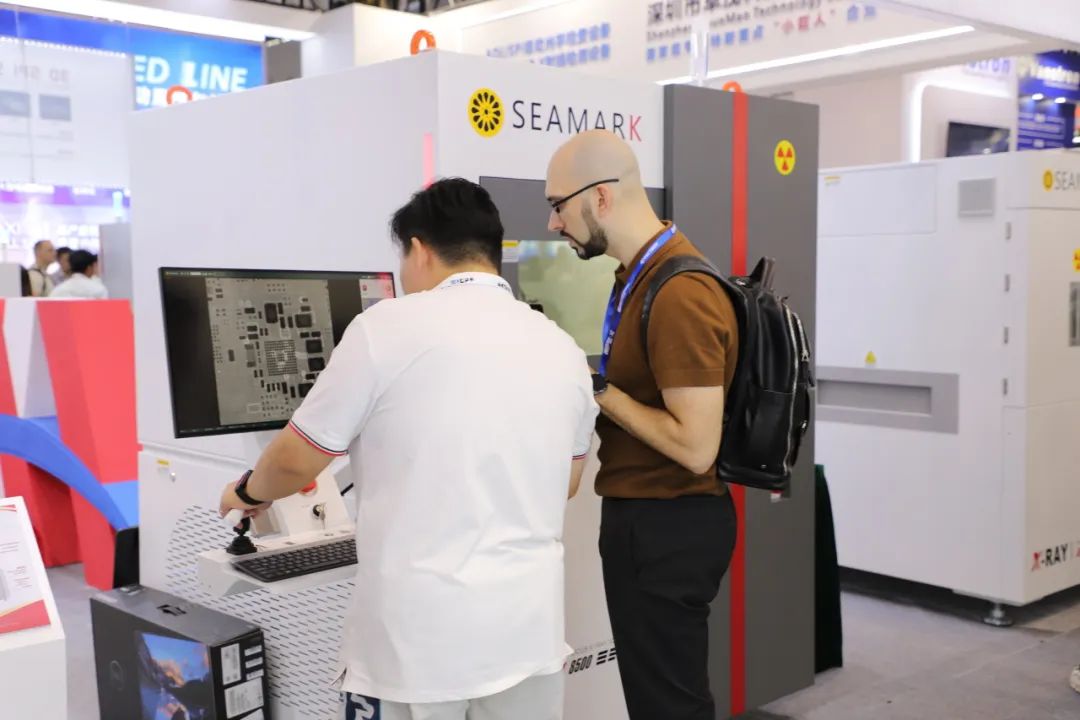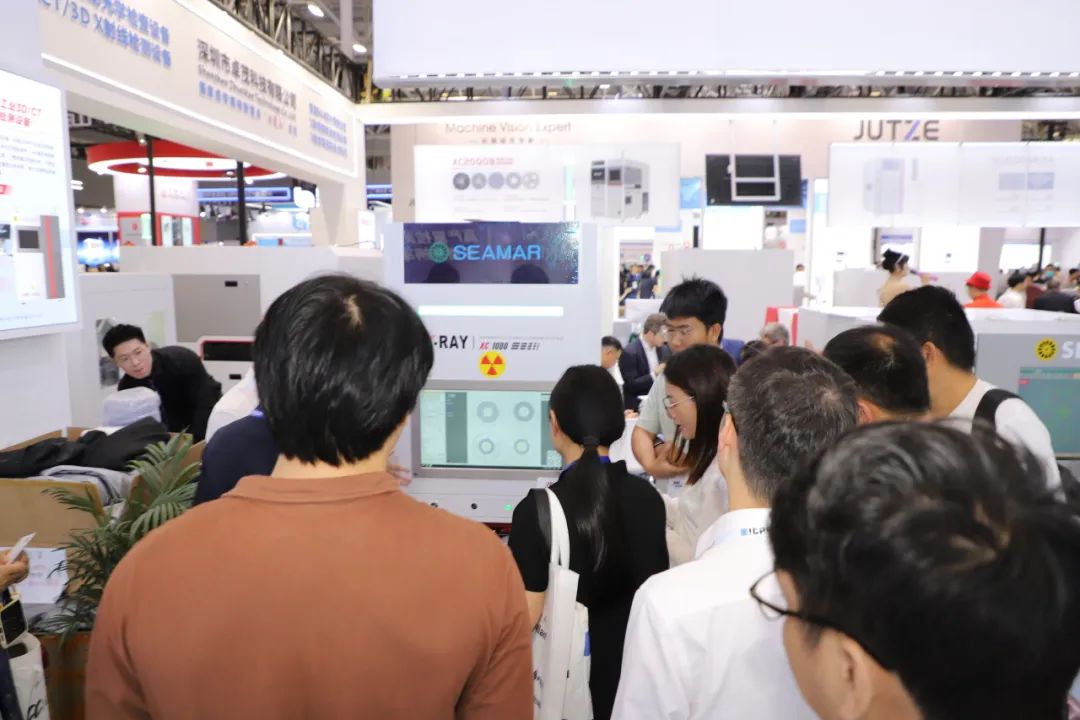 在展臺現場,卓茂科技針對電子制造智能工廠帶來了全場景應用解決方案。SMT整線檢測解決方案:3D SPI 3100錫膏檢查機、2D AOI S3020檢查機、3D AOI S3030、檢查機及高速CT型X射線全自動在線檢測設備AXI9000。