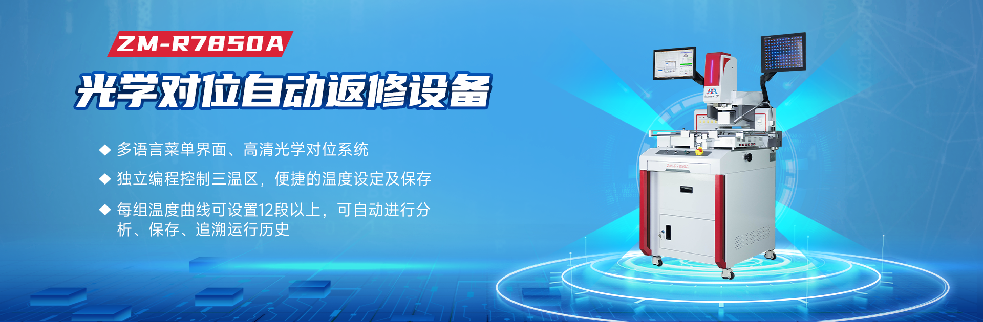 ZM-R7850A是一款多功能落地式PC控制的光學對位自動返修設備,具備以下特點:可做多語言菜單界面、便捷的溫度設定和管控、高清光學對位系統(tǒng),具有分光、放大、縮小和微調(diào)功能;高精度溫控傳感系統(tǒng),溫控精準。