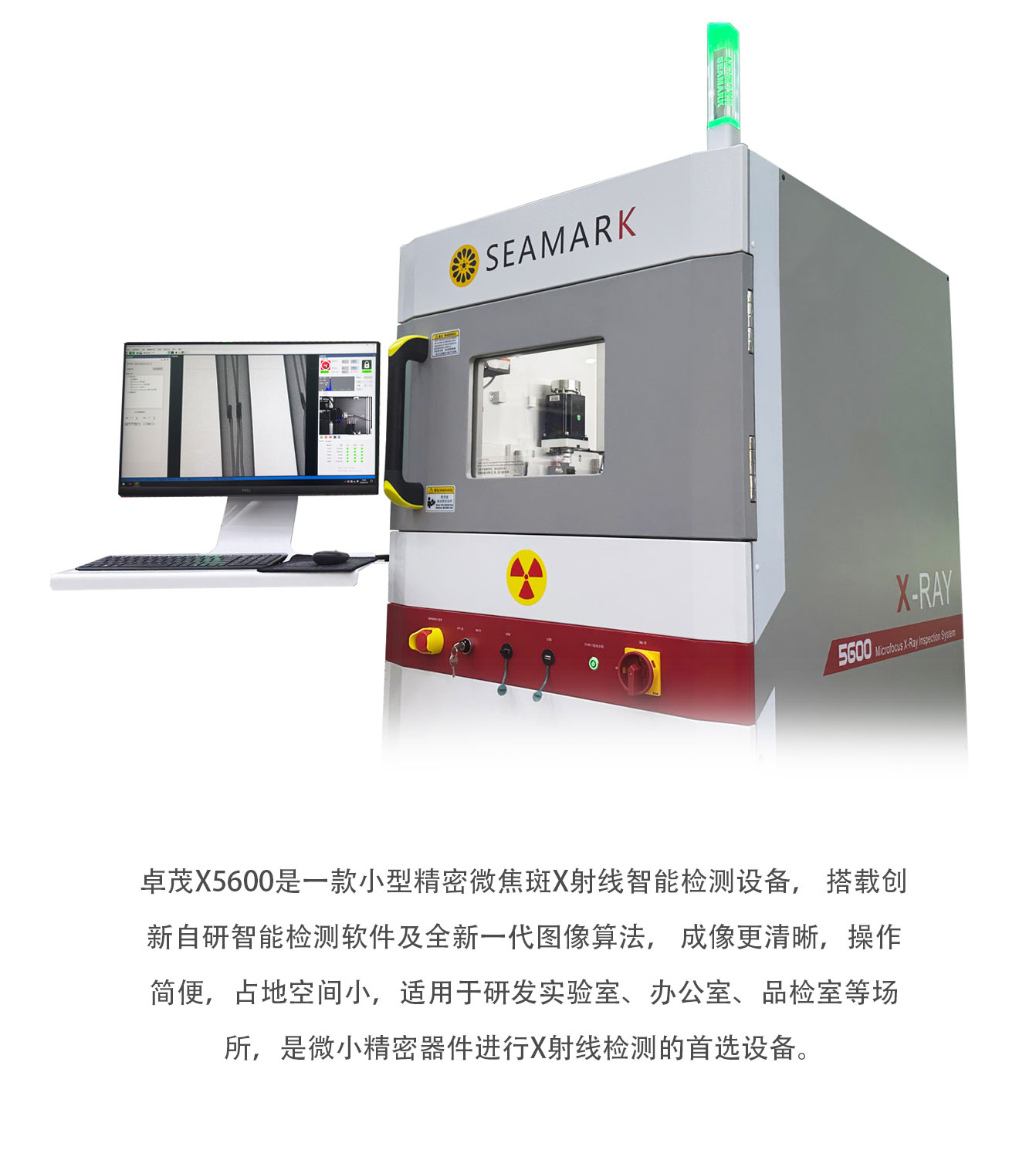 X5600是一款小型精密微焦斑X射線智能檢測設(shè)備,搭載創(chuàng)新自研智能檢測軟件及全新一代圖像算法,成像更清晰,操作簡便,占地空間小,適用于研發(fā)實(shí)驗(yàn)室、辦公室、品檢室等場所,是微小精密器件進(jìn)行X射線檢測的首選設(shè)備。